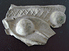 A fragment of a pressed metal strip, with berry and leaf pattern