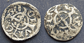 A scyphate coin with legend CI VI CI VI around a circle intersected by a long cross