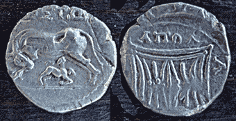 | Description | Obverse: Cow suckling calf. Reverse: curved stellate design | ||