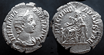 | Description | Obverse: Laureate head right. Reverse: Fecunditas seated left, reaching out to child. | ||