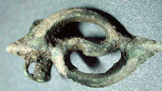 A Roman 'Trompetenmuster' motif brooch. Pin missing and body damaged (photo reconstruction).