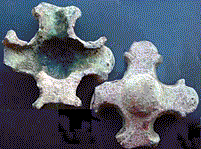 | Description | Cruciform strap junction of four equal arms with a central rounded boss. Underside of arms were enclosed, but three arms are missing those pieces.. | |
