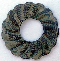 A pressed or stamped round mount with large central hole.