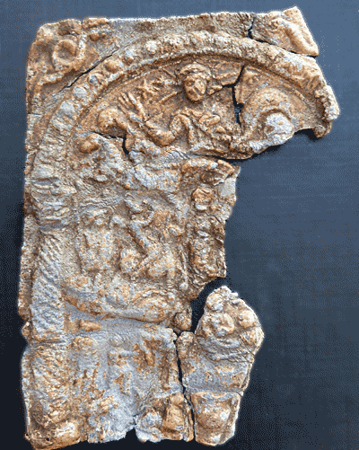 Damaged lead plaque attributed to the 4th century 'Rider cult'.